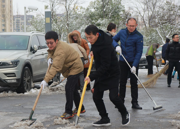 近日芜湖市普降暴雪,给人民的出行造成诸多不便,带来极大安全隐患。我公司积极响应市委、市政府的号召,于1月26日牵头召集金融服务区进驻单位建投公司、宜居公司、交投公司、民强公司、大桥公司、浦发银行、农发行、国元农保、光大银行、奇瑞徽银及大华事务所等十余家单位,传达市文明办《关于立即组织人员扫雪除冰的紧急通知》,并对园区道路进行责任区划分,约定统一行动。