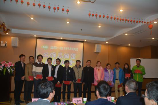 会末,胡克纬总经理宣读了对2015年度下半年出类拔萃事件责任人的表彰决定,高度评价了他们做出的贡献,对他们一如既往的为公司创造价值、不断创新表示感谢。同时胡总鼓励全体员工再接再厉,努力在2016年度再创佳绩。最后,相关领导为各部门员工颁发年终奖并予以新年祝福!