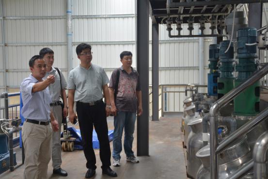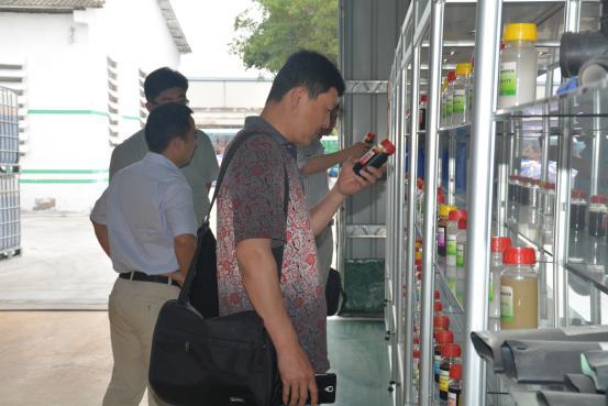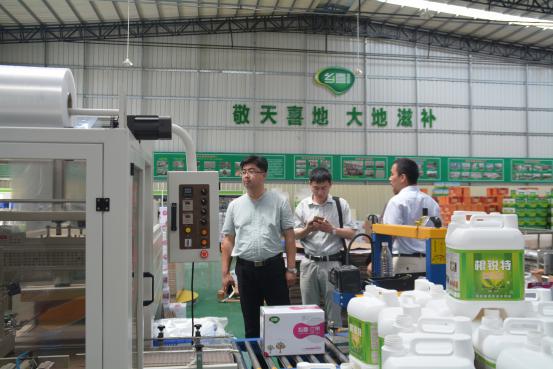 王厂长(图左1)一行参观液体肥料半自动分装线