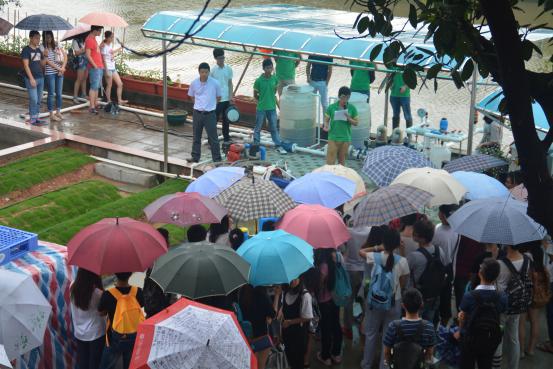 华农学子冒雨前来参观