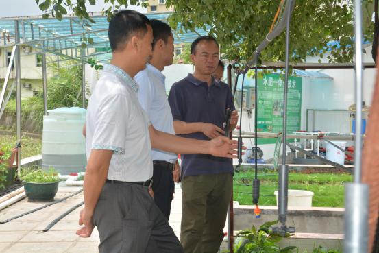 罗教授(图右2)一行了解灌溉首部系统的结构及其运作原理