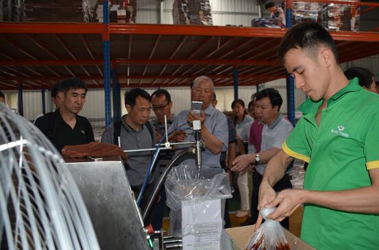 考察团参观液体肥料分装车间