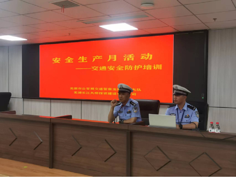 今年6月是全国第21个安全生产月,为进一步增强员工安全生产意识,提高各岗位人员应对突发事件的应急处置能力,防范安全事故的发生,近日,芜湖长江大桥投资建设有限公司特邀芜湖市交警支队大桥大队开展交通安全知识教育培训活动。