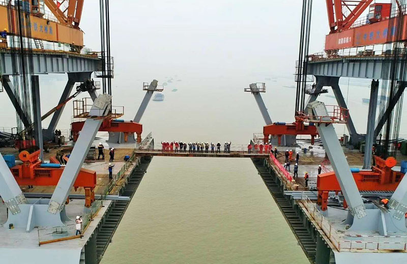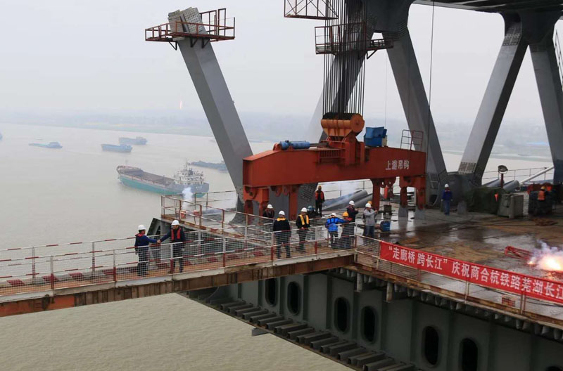2019年3月28日,商合杭铁路芜湖长江公铁大桥南北两岸在空中成功牵手。