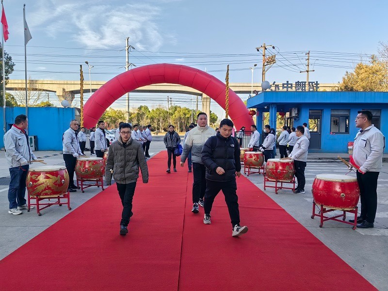 满载收获喜悦,满怀奋进豪情。芜湖莫森泰克汽车科技股份有限公司总经理周玉成携带全司中、高层领导干部整齐列队,在公司大门口迎接前来上班的员工们。伴着八面大鼓铿锵有力的鼓点节奏和喜庆热烈的歌曲声,在清晨温暖的阳光中,来自各方的员工们纷纷踏着红地毯穿过红色拱门,进入厂区开启新年第一天的工作。