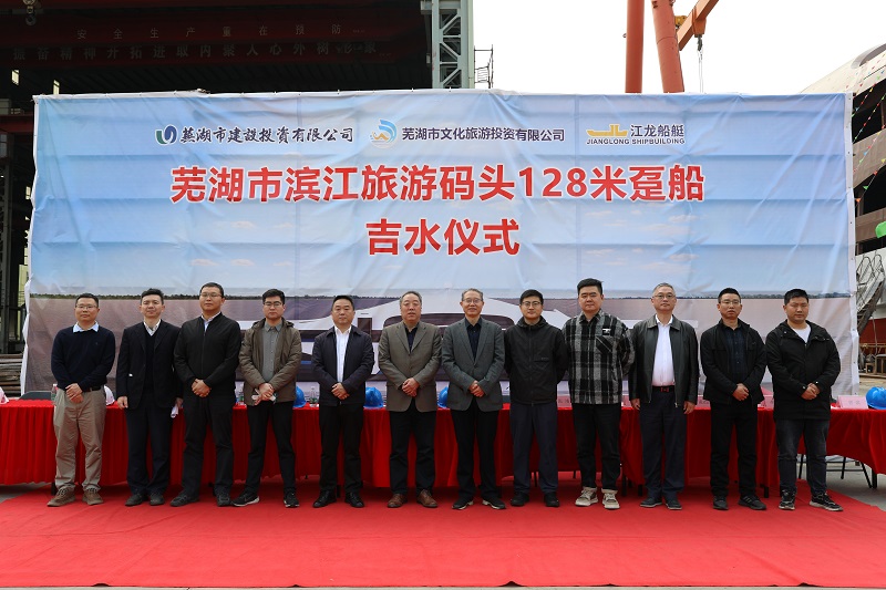2024年3月8日,位于广东省江门市江龙船艇生产基地上演了一场激动人心的吉水仪式。芜湖市精心打造的文旅新名片——“皖江明珠号”128米趸船正式下水,标志着其进入关键的水下调试阶段。吉水仪式现场气氛热烈庄重,芜湖市建设投资有限公司、芜湖市港航(地方海事)管理中心、芜湖市文化旅游投资有限公司相关领导悉数到场,共同见证了这一里程碑时刻。