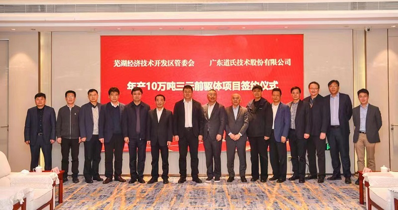 三元前驱体,是制备新能源锂电池三元正极的核心原材料,道氏技术聚焦新材料业务,专注材料创新、工艺创新、产品创新。芜湖项目的落地将快速提升道氏技术市场竞争力,并推动芜湖新能源产业的发展。