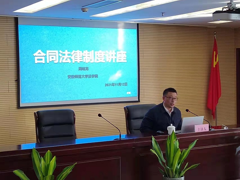 11月12日下午,为进一步落实公司“提升依法治企水平、增强员工法律意识”的法治宣传工作要求,公司邀请了安徽师范大学法学院周哨龙副教授在12楼会议室做了合同法律制度专题培训,周教授重点解读了合同法律通则部分内容,并结合实际案例和企业常见合同法律风险等方面做了详细而通俗易懂的讲解。